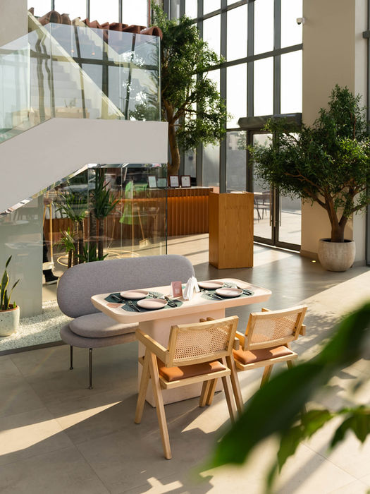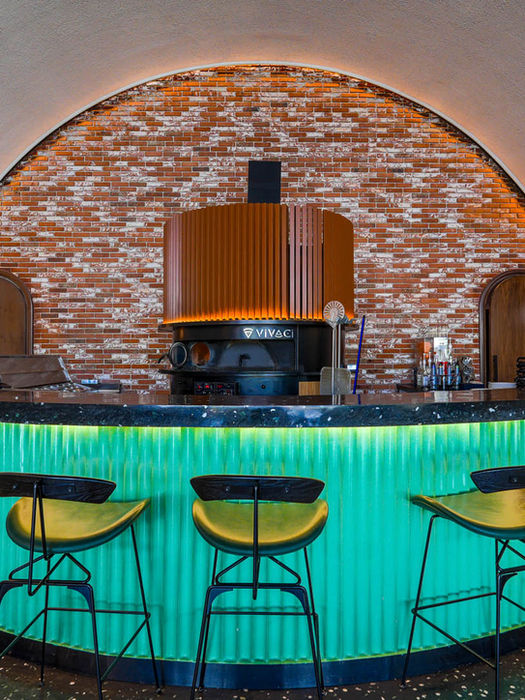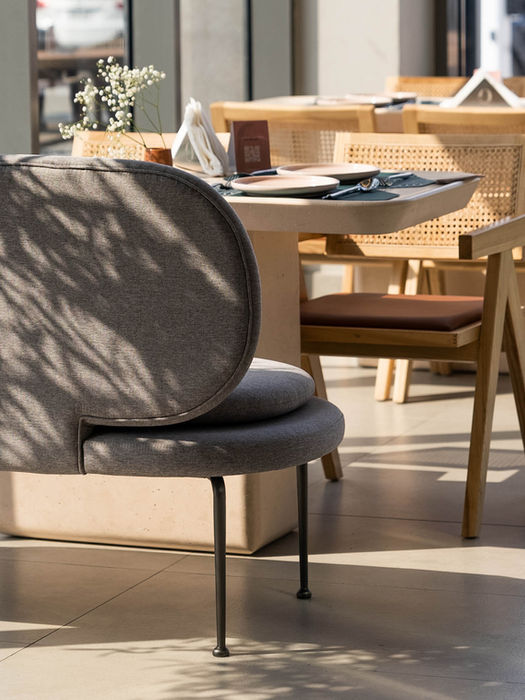 A restaurant offering a novel concept of grilled food using traditional methods, its name resonates perfectly with its setting. Despite its small size, the intricate details on the floor, walls, and ceiling are truly mesmerizing, making it a beautiful architectural masterpiece in every aspect.